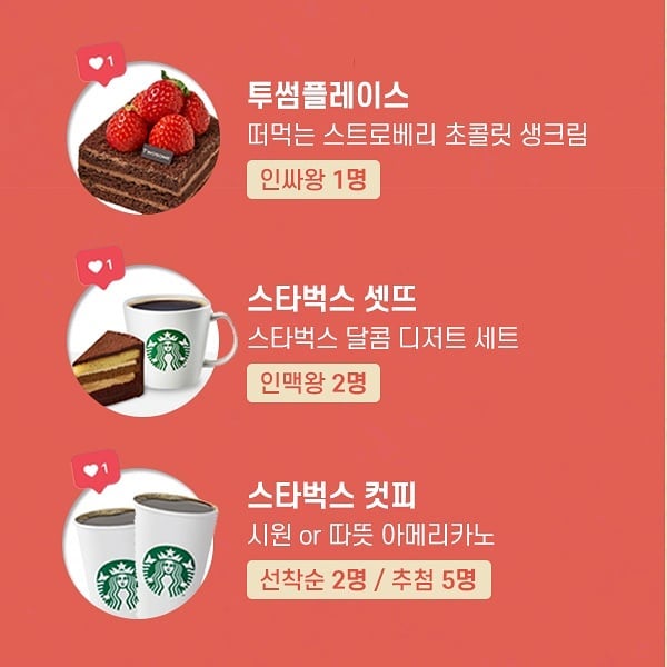 ㄴ 추첨 : 스타벅스 아메리카노 tall (5명)'EVENT' 카테고리의 다른 글
