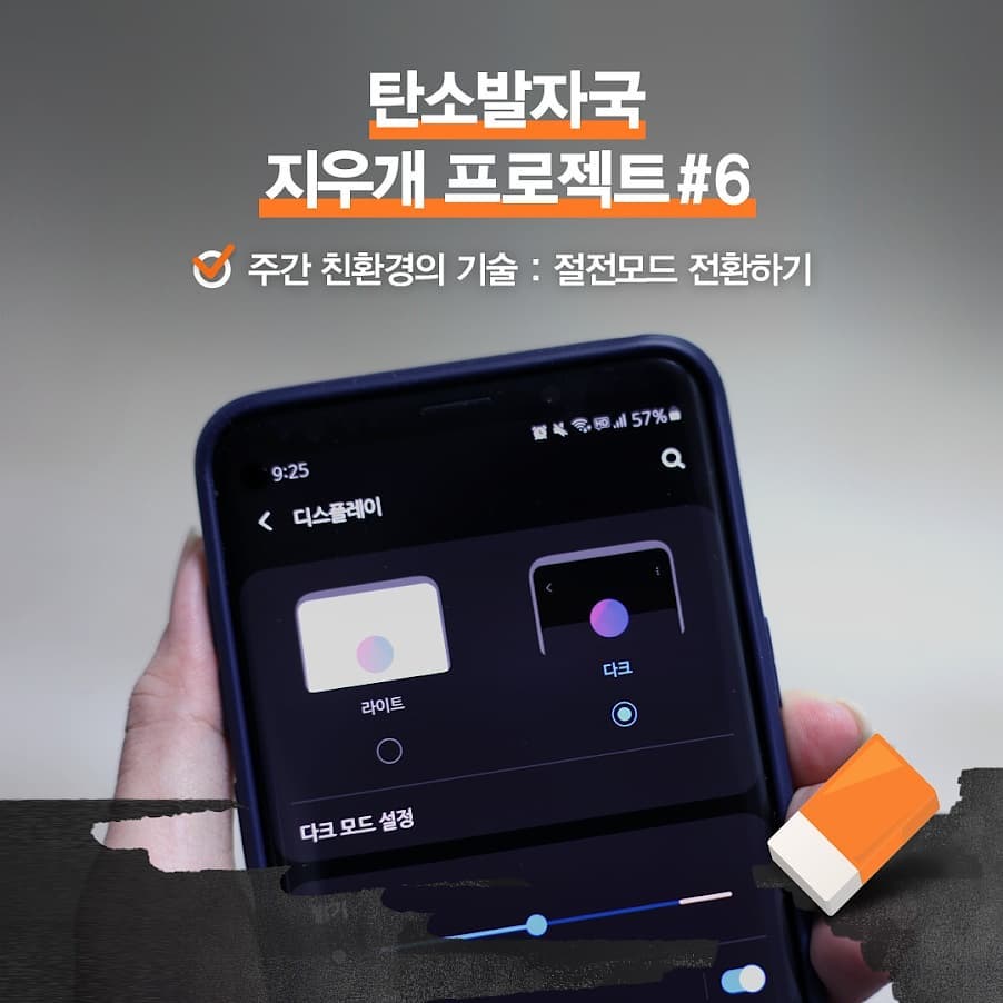 절전모드 or 다크모드 전환 후 인증샷 촬영하여 한화데이즈 계정 태그하여 업로드