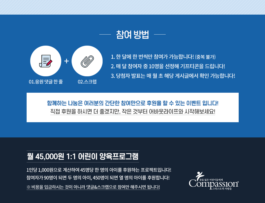 1. 덧글 참여만으로 아이를 후원할 수 있습니다!