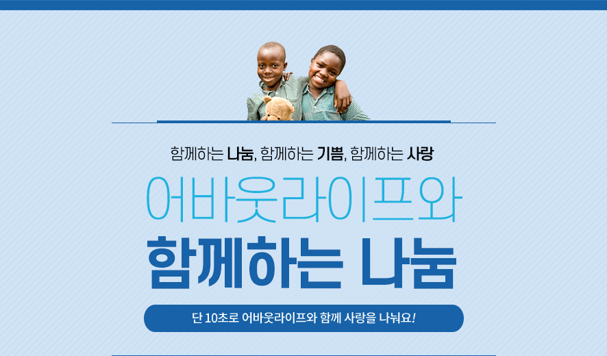 덧글 1개당(1인당 1회) 1000원으로 계산하여 해당 금액만큼 어바웃라이프에서 아이들을 후원하게 됩니다! 한 아이당 후원금 45,000원으로 참여자가 90명이 되면 두 아이, 450명이 되면 10명의 아이를 후원합니다 :) 덧글로 아이에게 사랑과 응원의 메세지를 남겨주세요! 해당 내용은 추려서 편지에 함께 작성해서 보낼 예정입니다. 많은 참여로 함께하는 나눔을 누려요~!